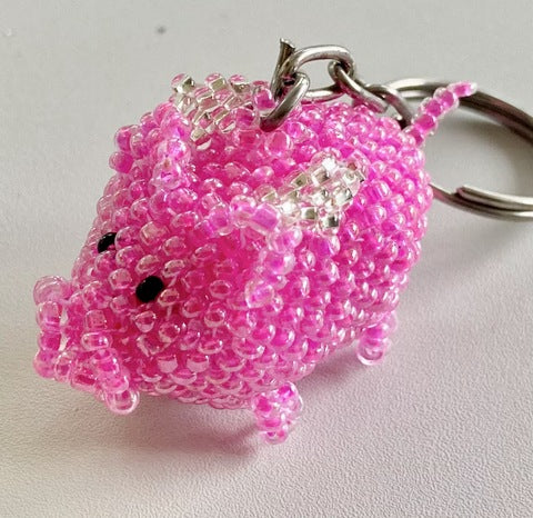 Best selling hand made bead Flying Pig keychains. Measures 1.5 inches by 1 inch.