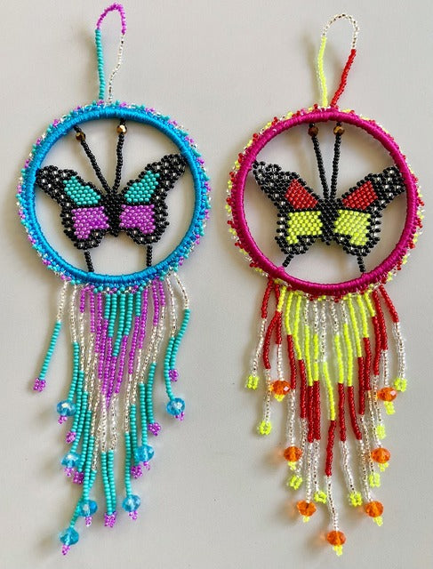 Hand made beaded Butterfly Dreamcatcher Ornaments in many different beautiful colors.