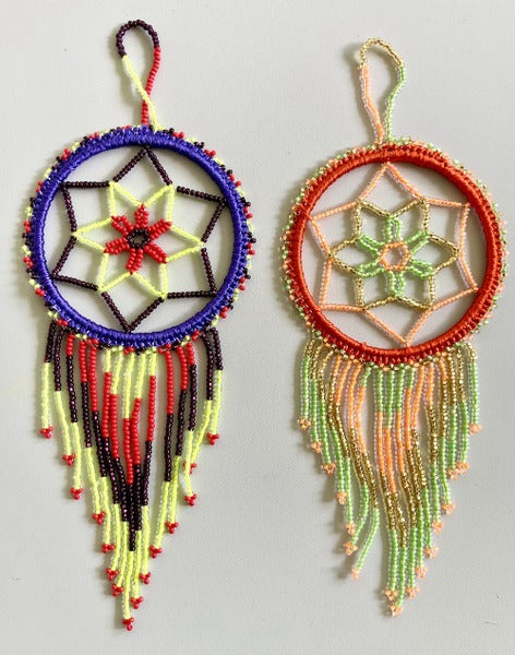 Hand made beaded Native American Style Dreamcatcher Ornaments in many different beautiful colors.