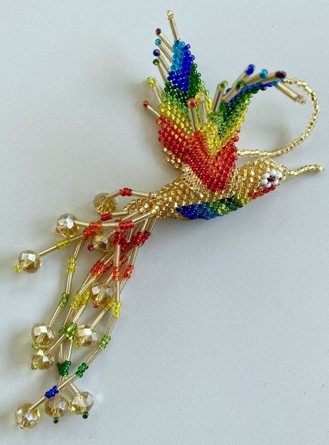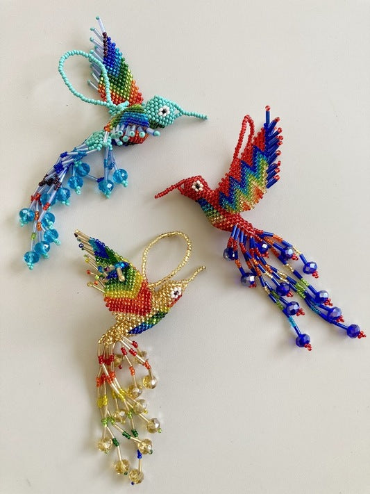 Best selling colorful rainbow hummingbird ornaments. measuring about 5 inches by 4 inches.