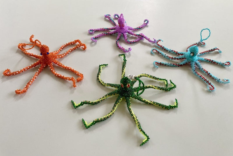 Hand made bead Octopus ornaments in many colors.